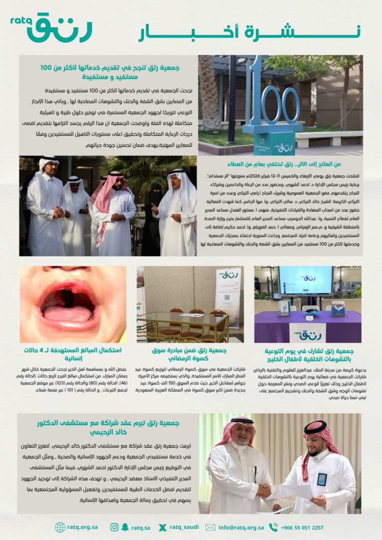 الجمال الحقيقي ينبع من الروح وليس من المظهر الخارجي، جمعية رتق تسعى جاهدة لتوعية المجتمع وتوفير الدعم اللازم لكل فرد مصاب بتشوهات الوجه وشق الشفة والحنك لتمنحهم الفرصة لتحقيق احلامهم والاندماج بكل كرامة مجتمع يحترم ويدعم الاختلافات.